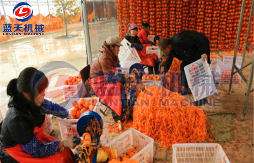 柿餅加工工藝流程:選果→去皮→裝盤→第一次烘烤→停烤→第二次烘烤→停烤→第三次烘烤→停烤→真空包裝→入庫。