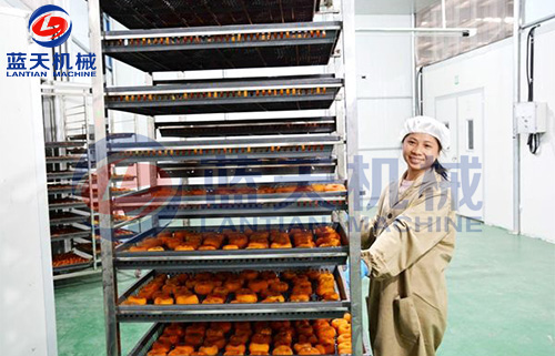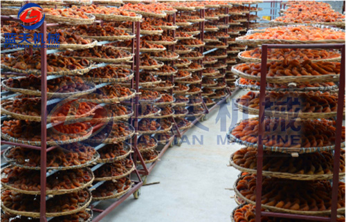 柿餅是我國的傳統食品,加工歷史悠久。柿餅營養豐富,口味甘美,有清熱瀉火和治療多鐘疾患的作用,深受國內消費者歡迎,并銷往日本。韓國等國。柿餅的口感主要取決于含水量,因此如何使柿餅含水量保持在一定的水平而又不能霉變是柿餅烘干機加工工藝中需要解決的問題。