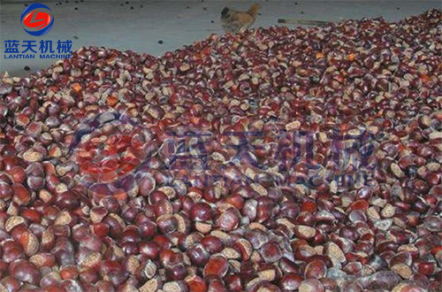 板栗烘干的預處理:新采收的板栗,水分含量高,可溶性糖含量低,特別是里面的澀皮難以剝離,如直接加工風味不佳,并且影響產品質量。經預處理后,栗果內的部分淀粉轉化為可溶性糖,并散失掉部分水分,相對地使可溶性物質的含量增加,風味轉好。處理方法是將新采收的板栗放于室內,厚度4~5cm,每天翻動2~3次,堆放4~5d(天)即可。