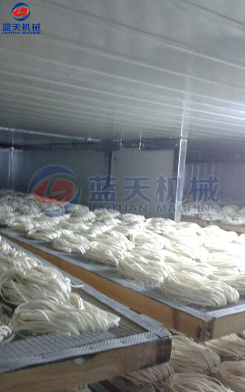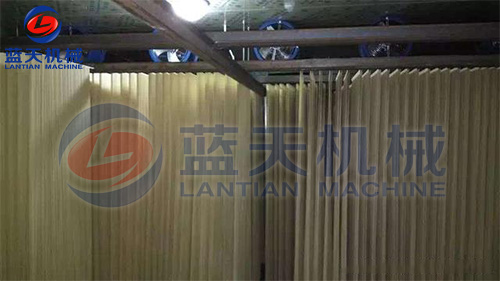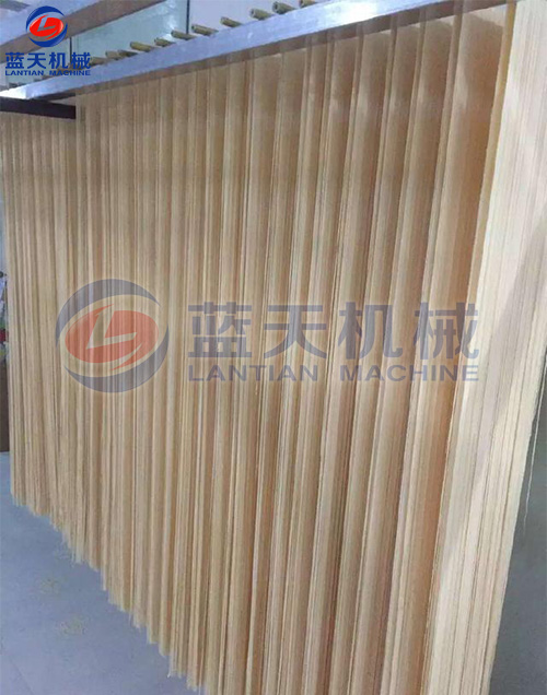 有些掛面容易在烘干過程中容易斷,有些不容易斷(玉米淀粉有幫助?。行┎荒苣褪軠囟?,溫度一高就容易斷,如果用太陽曬的話,盛夏上午10點(diǎn)鐘的太陽就能把掛面曬斷。有些溫度可以高一些。有些掛面一定要大量的風(fēng)量,否則中間的掛面就酸掉了!面條烘干機(jī)系統(tǒng)設(shè)計(jì)中非常重要的環(huán)節(jié)就是風(fēng)路設(shè)計(jì),對(duì)于大部分掛面的烘干來說,使用頂出風(fēng)機(jī)組再結(jié)合上下風(fēng)路更利于風(fēng)路循環(huán),更利于面條的烘干。