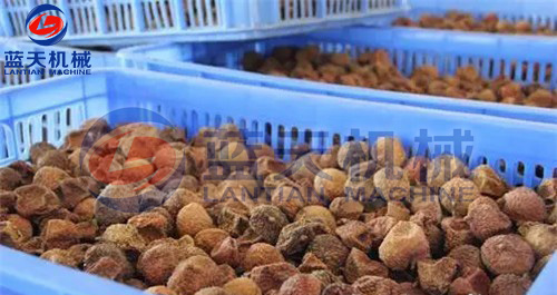 烘干過程有整果烘干和去殼烘干的不同產品加工要求,烘干兩種類型的產品,溫度控制不一樣,帶果皮的烘干溫度可以調高一些,達到60即可,純果肉的在50度即可,烘干后段都需要把溫度降低到45度進行烘制,烘干過程中無需翻動,可以無人值守,帶果皮的一般需要30小時,純果肉的烘干一般18小時即可完成。