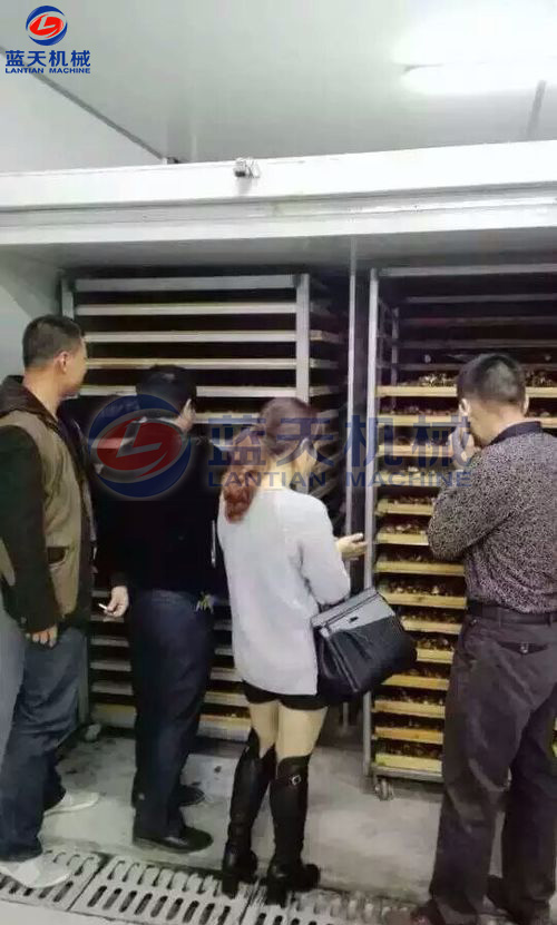 在這個(gè)過程中,設(shè)備一定不能夠出現(xiàn)故障,機(jī)組出故障就會出現(xiàn)溫度在上升濕度降不下來的情況,排濕量不夠。一旦出現(xiàn)這種情況,相當(dāng)一個(gè)反復(fù)一樣,羊肚菌就會發(fā)汗,一發(fā)汗就等于死掉了。第三個(gè)階段,溫度上升到48℃,時(shí)間設(shè)為3小時(shí),濕度保持在35%進(jìn)行干燥。最后一個(gè)階段,和干鮮比為1:6~8的羊肚菌一樣,兩個(gè)小時(shí)53℃,濕度35%,保證羊肚菌內(nèi)部全部干燥掉。