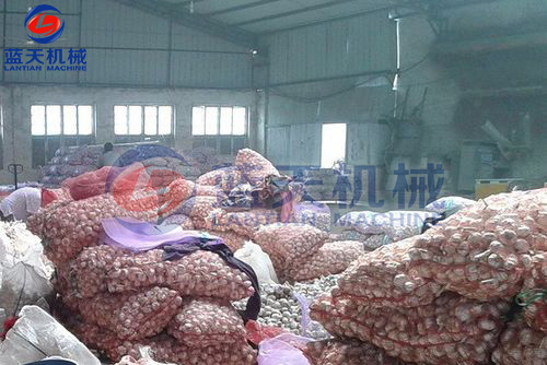 將干蒜片按完整度進行過篩分級,去除少許碎蒜片,(如在包裝過程中發現吸濕回潮的蒜片,進行復烘),將合格的蒜片裝入塑料袋內包裝,用紙箱外包裝處理后,貯藏于干燥、涼爽、通風的倉庫內。
