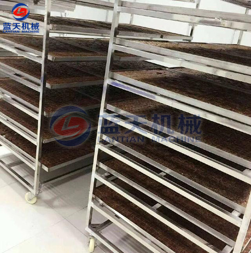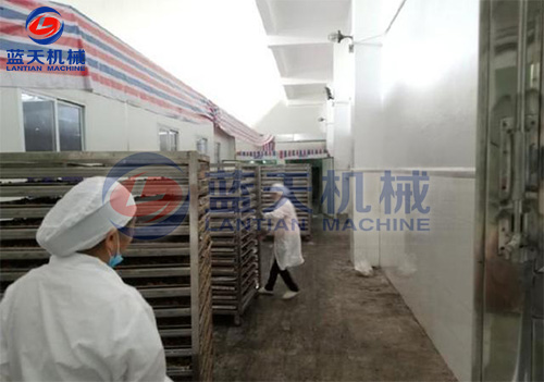 紅糖烘干工藝:將紅糖磚切成方塊狀,置入托盤中,在物料架中分層放好,注意層與層之間的距離,將物料車推入烘干房,開(kāi)始啟動(dòng)溫濕控制系統(tǒng),在紅糖烘干機(jī)的使用過(guò)程中,第一個(gè)小時(shí)可以只升溫不排濕,因?yàn)樵诠ぷ鞯牡谝浑A段,烘干房里面的濕度很低。第二階段設(shè)定為烘干加排濕的工作程序模式。紅糖烘干機(jī)帶有余熱回收功能。在排濕過(guò)程中的熱量會(huì)重新參與到烘干房的熱循環(huán)。排濕過(guò)程當(dāng)中不會(huì)造成熱量浪費(fèi),從而降低了運(yùn)行成本。