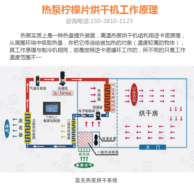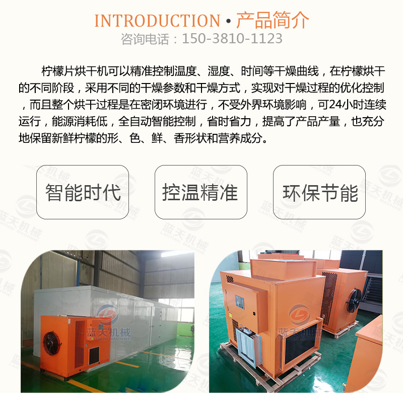 三:將檸檬片整齊的擺放在通風的托盤上,切忌堆疊,先利用自然風和光照使檸檬片脫去部分水分。將風干24小時的檸檬片轉移到空氣能檸檬烘干機內,設置烘干機溫度為低溫40-50℃范圍,檸檬片的水分需在低溫干燥的過程中緩慢蒸發并排出,烘干過程約12-13小時。