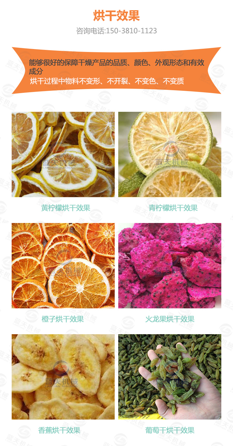 檸檬片在烘干加工時,很容易出現表面結硬殼,而檸檬片里面卻不是濕的這種現象,這是一種假性烘干。那怎么解決呢? 那就是檸檬烘干設備在烘制過程中當檸檬片烘干干燥于恰當程度時,停機靜置,實行回潮二次復烘,終使檸檬片達到真正的保持原色烘干。