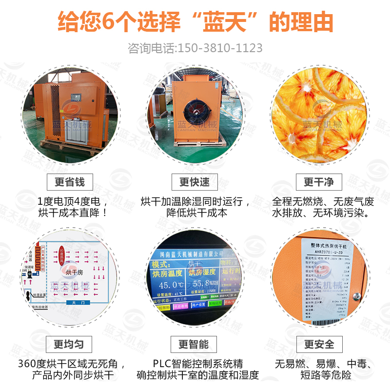 四:將裝有檸檬片物料推車在檸檬烘干設備內靜置回潮,當放置一段時間后,檸檬片里面的水分遷移到檸檬片表面,表面會回軟。當手捏發現表面較濕時,再次將檸檬片的架子車推入檸檬片烘干機內,進行二次烘干復烤。