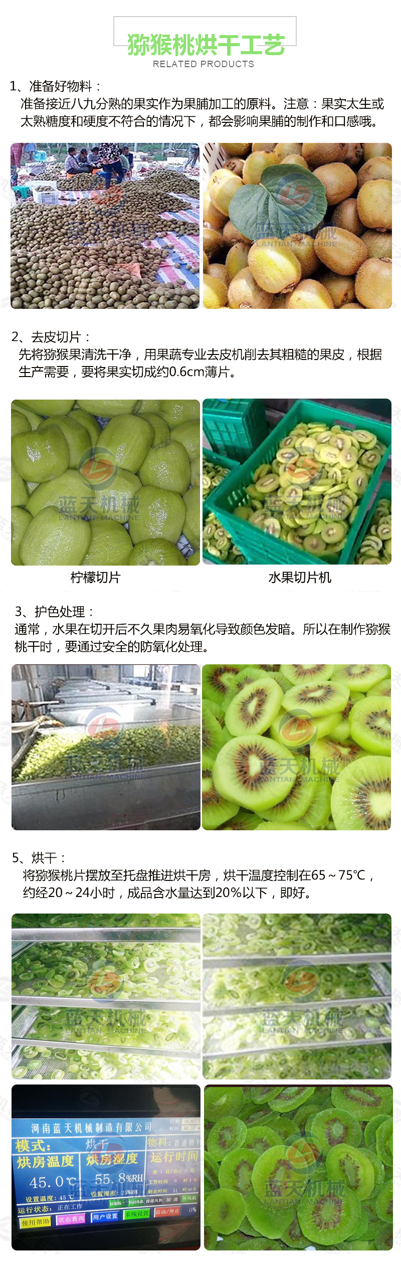 獼猴桃烘干機烘干獼猴桃的工藝流程: