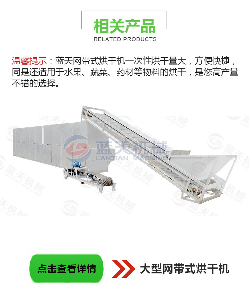 2.熱風垂直穿透物料網帶,強物排放濕度,熱風在烘干室循環。