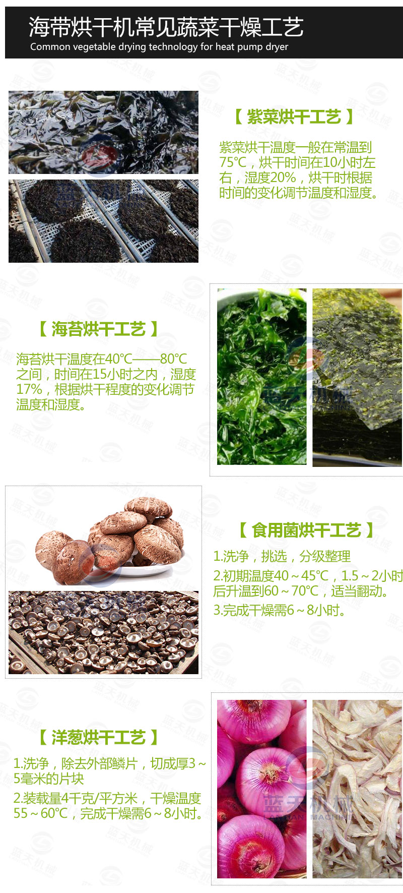 3、烘干時間—海帶烘干一般周期比較長,快速烘干一般都會破壞烘干質量;