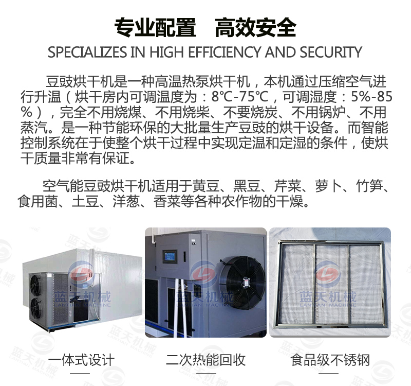 豆豉烘干機還可以用在魚粉、咖啡豆、蒜片、飼料顆粒、皮革污泥、大豆豆粕、油茶籽、山茶籽、玫瑰花、魚干,蔬菜,食品,辣椒等材料的烘干處理。