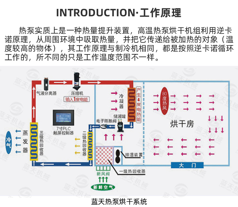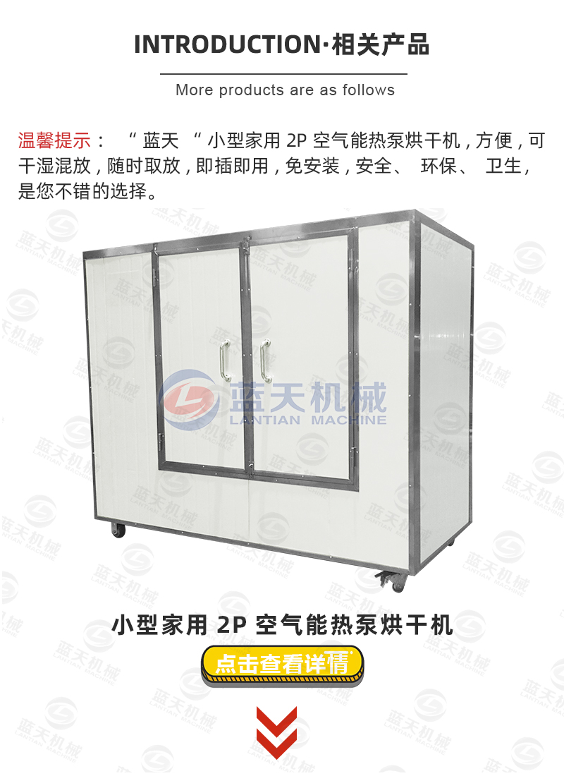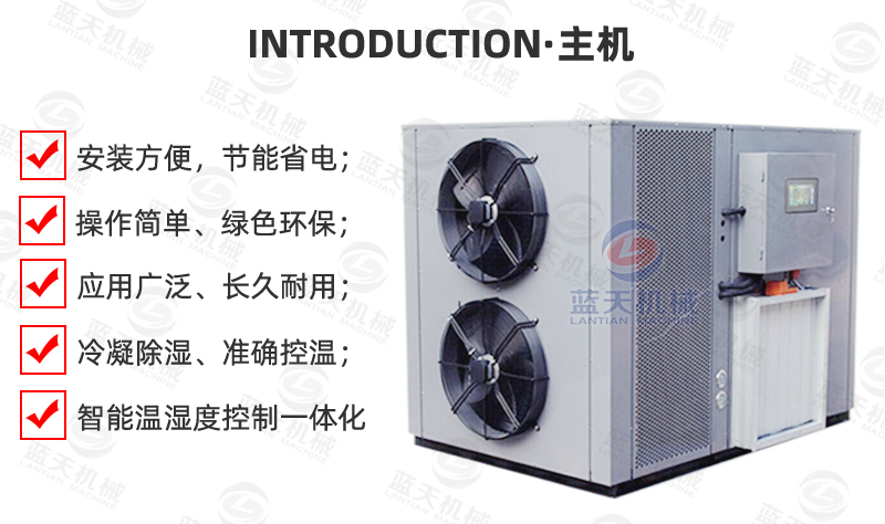 采用平流風烘干運行,另外根據龍眼的特性(初始水分含量高、溫度敏gan性高,糖分含量高),通常溫度控制在50-60℃,熱泵蒸發器吸收小型龍眼烘干機外的空氣,經過循環的加溫過程,吸收龍眼肉中的水分,并經過熱風循環系統有效排濕及冷凝過程把龍眼肉的水分排出烘干房外,直至完成智能溫濕控制系統的指令,來實現龍眼烘干的優化工藝,烘干完成約為12小時左右。