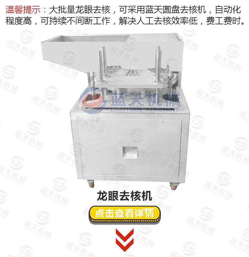將龍眼連殼清洗干凈后,剝果殼去果核由有經驗的員工操作,帶上手套,手持工具,從龍眼果實的蒂部開始挖取,捏果的左手輕輕護住果實,拿銼的右手將整個果實按梅花形狀開裂,干脆利落的將黑亮亮的果核取出,這時被脫去外殼剝去內核的元肉更為誘人啦,如潤玉一般玲瓏剔透呵......來輕輕的擺放在竹篩上。